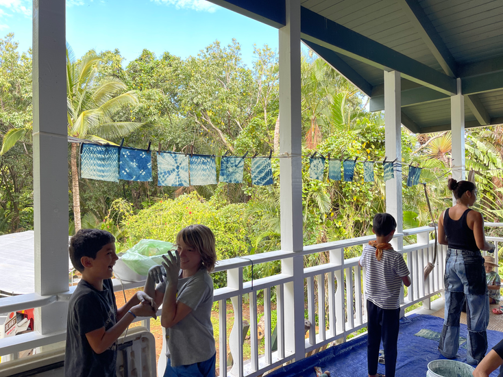 In the K-6 Plant Dye Workshop, students learned how to use a variety of native plants and polynesian cultivars for dyeing. They specifically worked more in depthly with ʻōlena, lauaʻe, palapalai, and ʻukiʻuki.