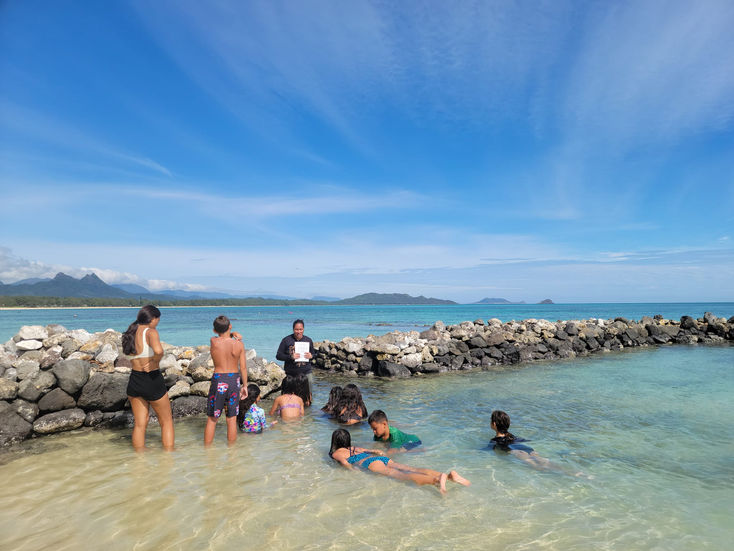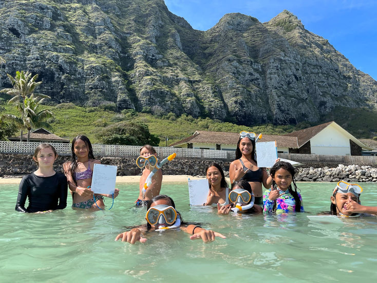 The students were able to go diving, in the process learning fish and limu identification, explore fishponds and the life that they bring, as well as visit coral researchers and see the effect that climate change is having on our corals and near-shore ecosystems.